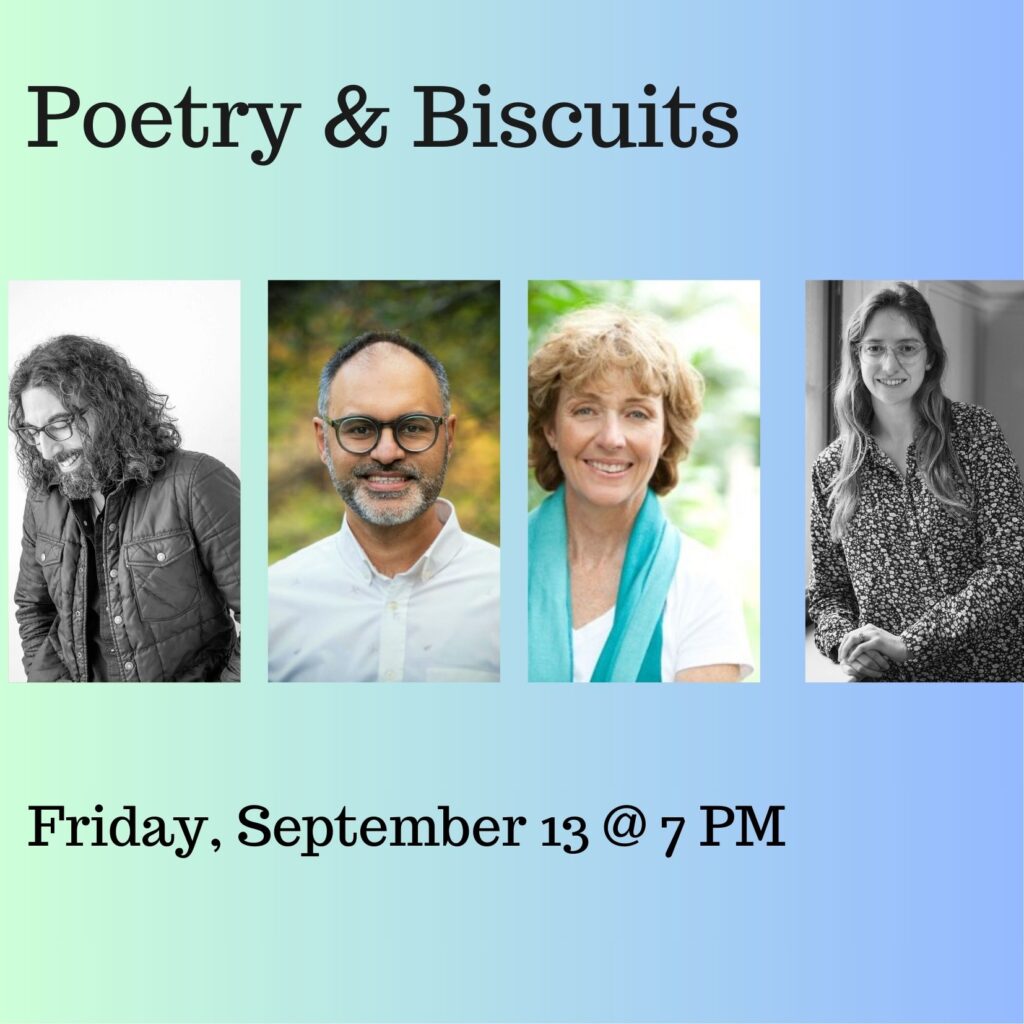 Chicago. IL, POETRY & BISCUITS: 2145 W Walton, Ukrainian Village neighborhood. Daniel Khalastchi, Faisal Mohyuddin, Catherine Staples, and Natalie Staples. Friday, September 13, 2024  @ 7:00 PM.